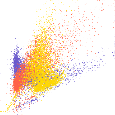 to compare relative density in the scatter plot. Furthermore, if colors