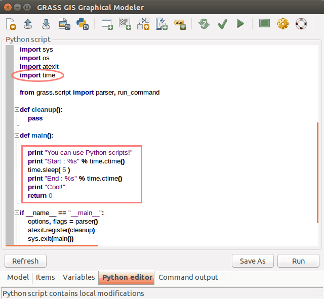 Figure: Python editor in the wxGUI Graphical Modeler.