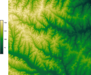 A color table from viscm applied to the elevation raster from the North Carolina sample dataset.