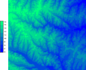 In case we want to use a discrete color table with intervals with given constant color, we use the -d flag and the number of colors is now the number of intervals, so we want to make it higher, 5 in this case.