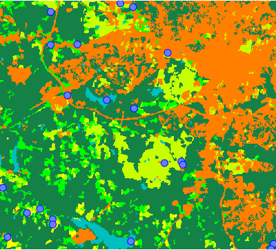 Figure: Three random points in each category of landclass raster map