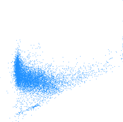 Reducing the resolution creates a possibility of missing some outliers or even smaller groups as some of the cells are just ignored, but typically the general shape of the scatter plot is preserved. In any case, with less points, every operation will by much faster.