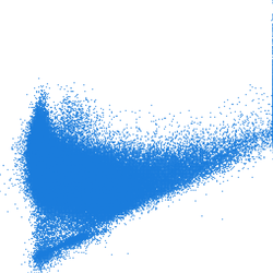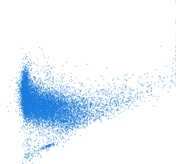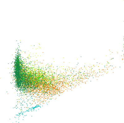 This best describes the actual state of the data, but unfortunately this creates a lot of points which must be processed and rendered. Therefore, it is also possible to compute the scatter plot in a lower resolution by changing the computational region resolution: