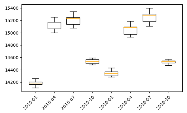 As you can see below, the plot plots the boxplots using the 3-month granularity of the input strds.
