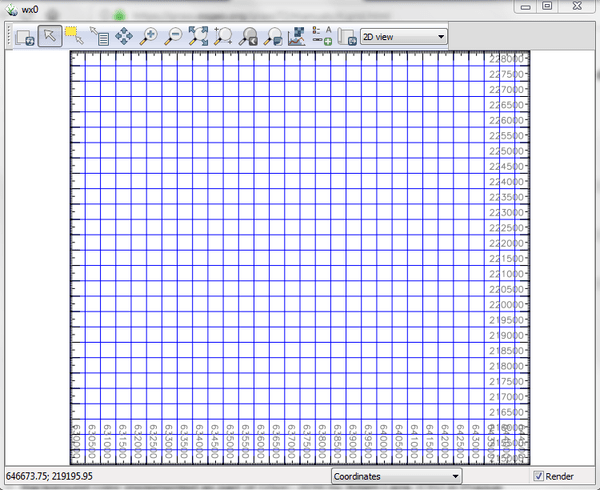To draw a blue standard rectangular grid at a 500 (meter) spacing run the following:
