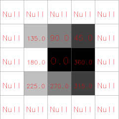 The aspect for slope equal to zero (flat areas) is set to zero (-9999 with -n flag). Thus, most cells with a very small slope end up having category 0, 45, ..., 360 in aspect output. It is possible to reduce the bias in these directions by filtering out the aspect in areas where the terrain is almost flat. A option min_slope can be used to specify the minimum slope for which aspect is computed. For all cells with slope \< min_slope, both slope and aspect are set to zero.