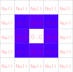 The algorithm used to determine slope and aspect uses a 3x3 neighborhood around each cell in the raster elevation map. Thus, slope and aspect are not determineed for cells adjacent to the edges and NULL cells in the elevation map layer. These cells are by default set to nodata in output raster maps. With the -e flag, output values are estimated for these cells, avoiding cropping along the edges.