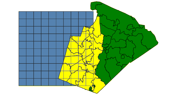 v.select with OVERLAPS operator: selected grid boxes shown in yellow