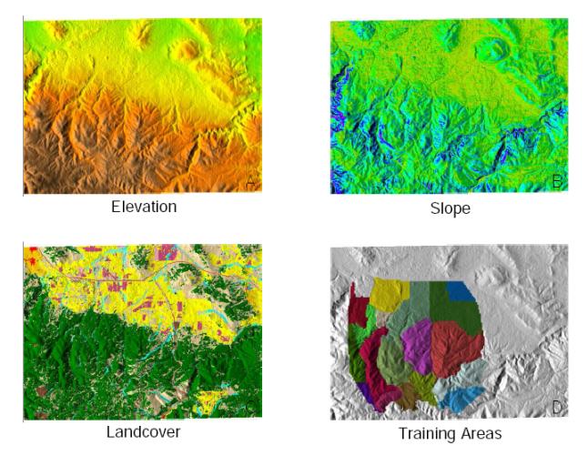 grass72_different_terrain_analyses_and_visualizations_in_multiple_map_displays.png
